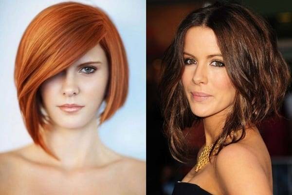 Вытянутому лицу или лицу прямоугольной формы подходит укороченный боб. Такая стрижка, как боб на средние волосы и укороченные помогает сделать черты лица более нежными и округлить их. Неплохо с этой задачей справляется и прямой боб с челкой.