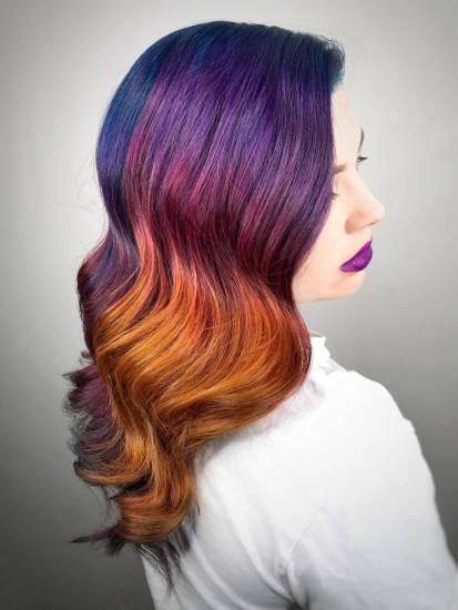 Если вы хотите яркости в образе, обратите внимание на омбре и балаяж. Приветствуется использование самых неожиданных цветов: фиолетового, розового, голубого