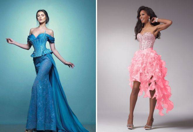 В современном мире корсеты днём встретишь не часто, зато вечерние туалеты предложены в разнообразных вариантах на любой вкус.