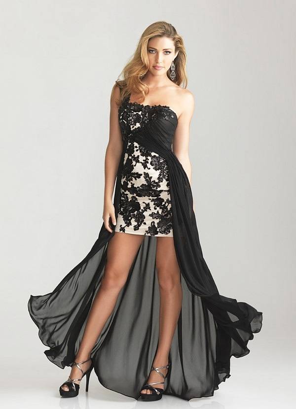 С юбкой-маллет. Этот фасон стал популярным еще несколько лет назад, и в новом сезоне он так и не покинул модный олимп. Платье с короткой юбкой спереди и длинным подолом сзади выглядит очень красиво и нежно. Оно прекрасно подойдет для выпускного вечера.