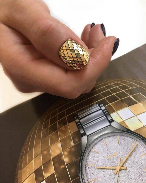 Как и другие новинки золотого маникюра, этот тренд может иметь множество вариаций.