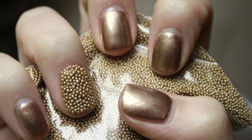 Золотой маникюр 2020-2021 с икринками или бисером — тенденции