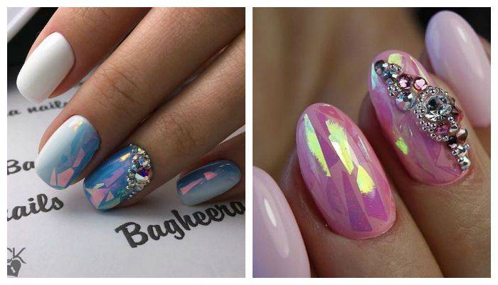 Маникюр «битое стекло» на день рождения