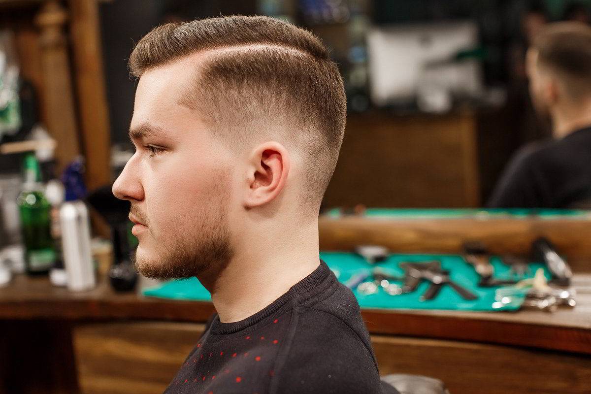 Суть стрижки заключается в следующем: укорачиваются волосы на висках, сверху длина волос достигает пары сантиметров или меньше по усмотрению клиента, переход от верхней части к вискам плавный. Подойдет на короткие волосы.
