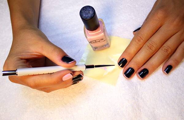- Выбрать контрастный гель-лак и выложить каплю на палитру.