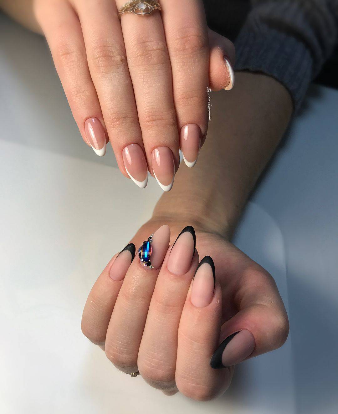 Эти два противоположных цвета отлично гармонируют вместе. Выполняя маникюр такого плана можно быть уверенным в его универсальности, ведь он подойдет под любой стиль одежды.