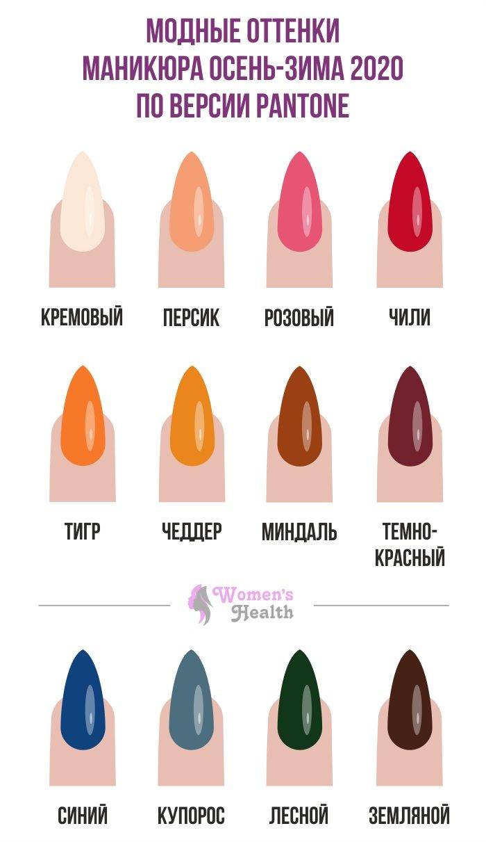 Модные цвета маникюра 2020 на осенне-зимний сезон произведут впечатление даже на искушенную эстетку. Согласно прогнозам экспертов института Pantone в разнооттеночной палитре будут лидировать нежные персиковые ноты и классический красный цвет, представленный в двух вариантах – яркий перец чили и темный полутон, который нарекли красным велосипедом.