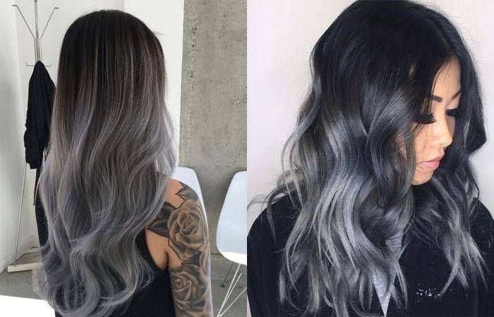 Пепельное омбре на черные волосы