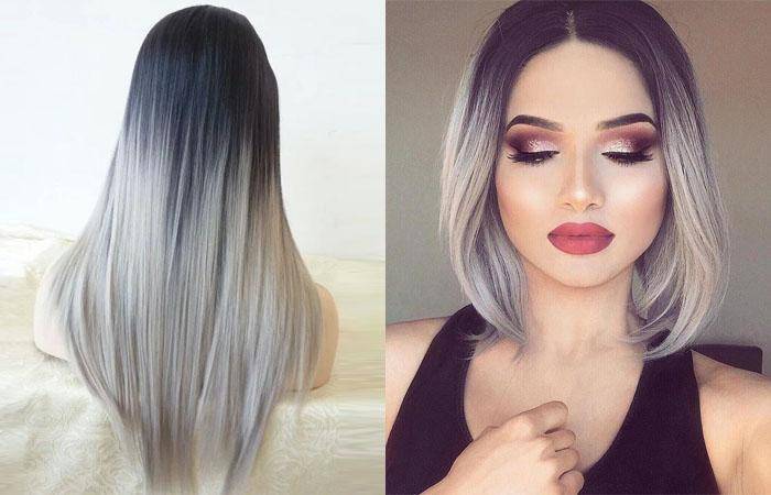 Вариации серого омбре по типам волос с фото