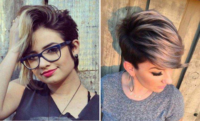Такую стрижку часто выбирают молодые, творческие, неформальные девушки, поэтому им подойдет такое же хаотичное, рваное, экстремальное омбре или балаяж. Можно, наоборот, сделать ровную линию перехода слева и справа, но для этого желательно сходить в салон, самостоятельно это сложно.