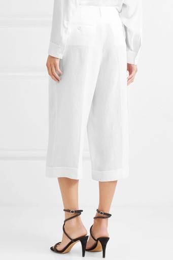 Брюки отшиваются из мягких струящихся тканей, чтобы которые позволяют формировать каскадные складки и задать эффектную силуэтную линию. Длина штанин – в пол, если брючины укорочены, речь уже идет о кюлотах.