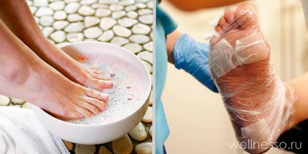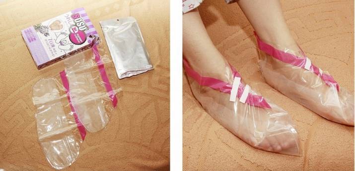 - Обернуть стопы в целлофановый пакет или же надеть специальные носочки.