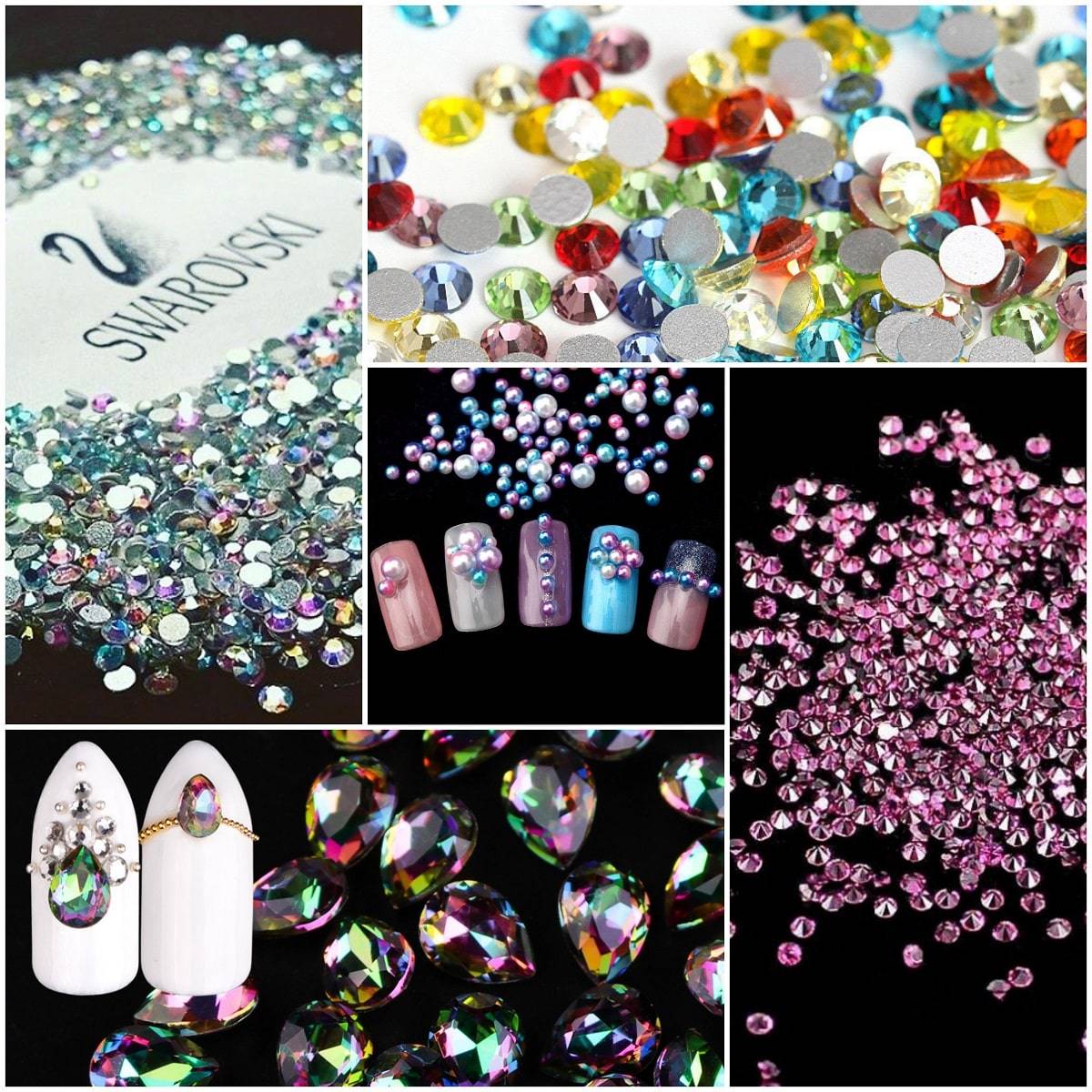 Стразы Сваровски отличаются от прочих пластиковых камней. Данные стразы преимущественно хамелеоны, они переливаются различными оттенками и богато смотрятся на ногтях. Ещё одно основное отличие данных кристаллов в том, что они способны преломлять попадающий на их поверхность свет. Однако и стоимость таких камушков выше, чем у других.