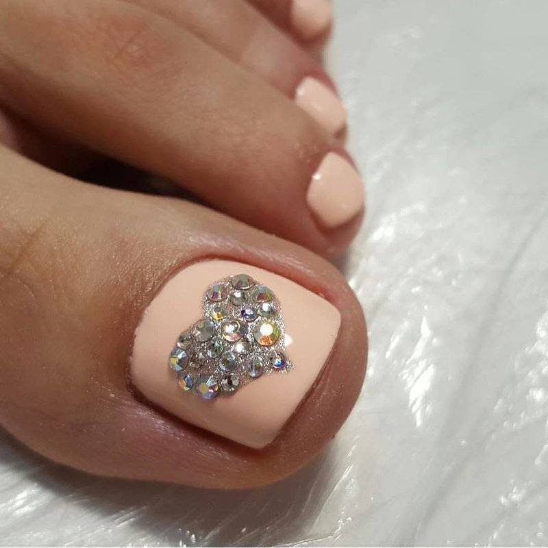 Актуальный педикюр гель-лаком со стразами (с фото)