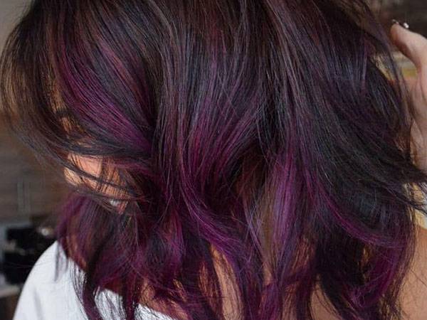Отличный цвет для темно-русой базы. При плавном переходе фиолетовый приобретает розовые отблески и дает красивое сочетание с природным цветом волос. Использовать такую комбинацию можно на средне-коричневых и русых волосах, однако тон фиолетового должен быть приближен к пастельному. Подобное окрашивание делает образ воздушным и скрывает признаки старения.
