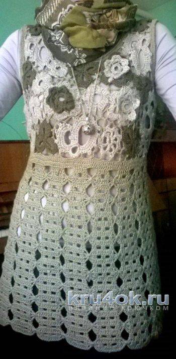 Женское летнее платье, связанное крючком из мотивов