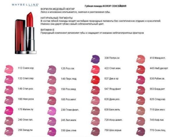За достаточно приемлемую цену вы получаете товар хорошего качества, который очень экономично расходуется. При этом одновременно увлажняет вам губы. Мэйбелин Колор Сенсейшн создала палитру цветов с самыми актуальными оттенками, которые подойдут практически любому типу внешности.
