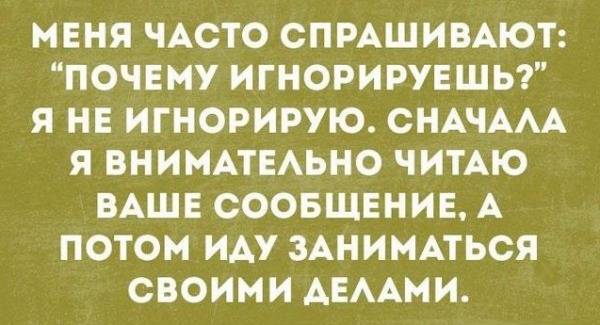 - Люди, почему то решили, что если ты не выкладываешь каждый день новые фотки, значит, твоя жизнь скучна и полна безысходности. А ты проводишь все дни дома, мужчины у тебя нет, цветов не видела с последнего дня рождения, на улицу не выходишь и вообще мёртвая лежишь.