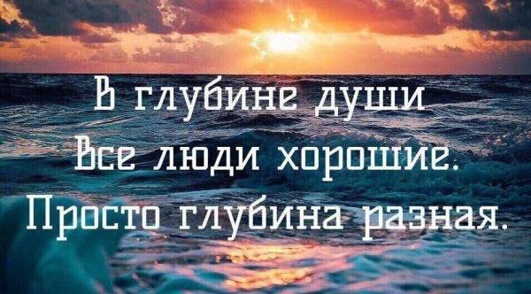 Ты же знаешь, что в глубине души все люди хорошие. Только вот глубина у каждой души разная, и увидеть ее с ходу, к сожалению, невозможно.