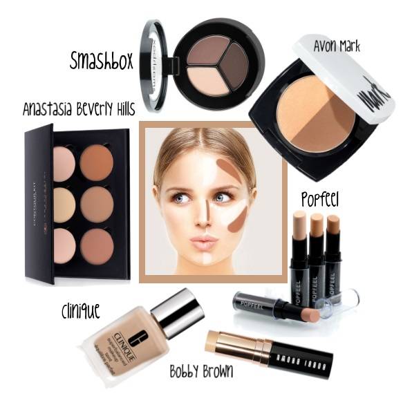 Средства для контуринга решают две задачи: затемняют одни зоны лица и высветляют другие. Ниже я покажу вам наглядные схемы, чтобы стало понятно, что и куда наносится. А пока предлагаю пополнить косметичку средствами, которые необходимы для этого этапа в макияже.
