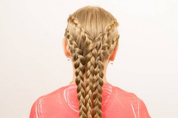 - при создании второго звена в крайнюю праву часть добавить свободных волос и вплести вновь созданную прядь в прическу;