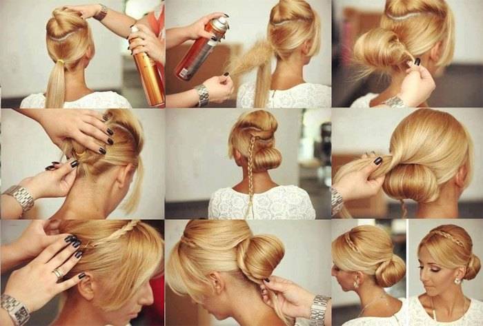- Готовая прическа сбрызгивается лаком.