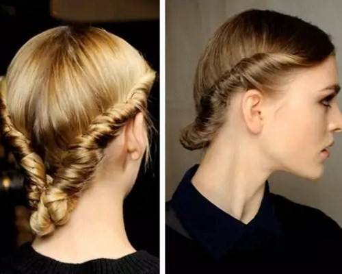 - Заплетите по бокам две косы и вставьте их кончики у основания друг друга.