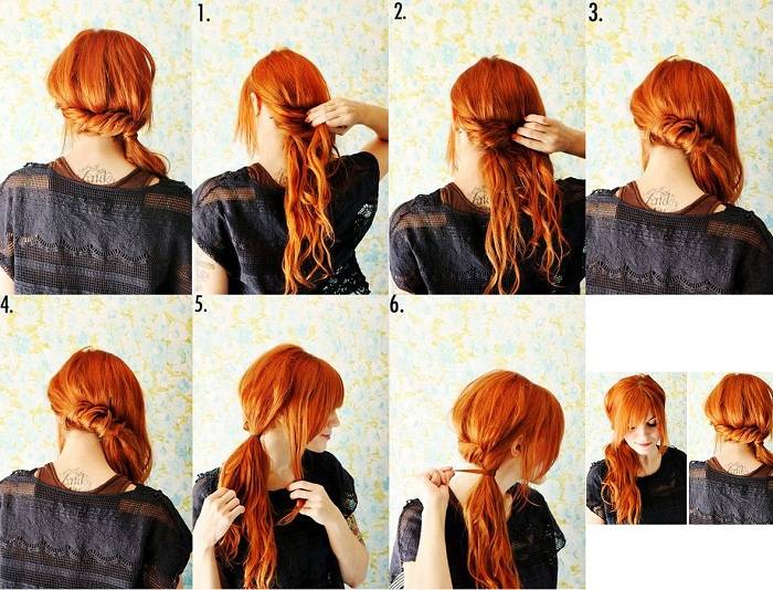 Пошаговые фото-инструкции разных вариантов причесок с хвостом-узлом