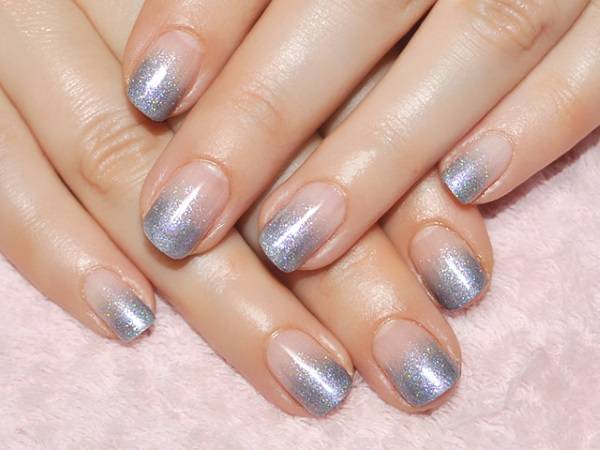 Сначала выберите откуда пойдет блестящая растяжка: от основания или края ногтя. В этом месте концентрация блесток будет больше, а затем будет сходить на нет. На выбранное начало рисунка наносится полоса блестящего гель-лака шириной 1-2 мм. Потом с помощью веерной кисти стоит растянуть эту полосу на другую сторону ногтя и просушить слой. Повторите эти этапы примерно 3 раза. С каждым разом наносите полоску тоньше и растягивайте ее все меньше.