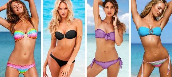 В коллекции Victoria secret представлены разные модели купальников бикини. Главное подобрать подходящий вашей фигуре фасон.