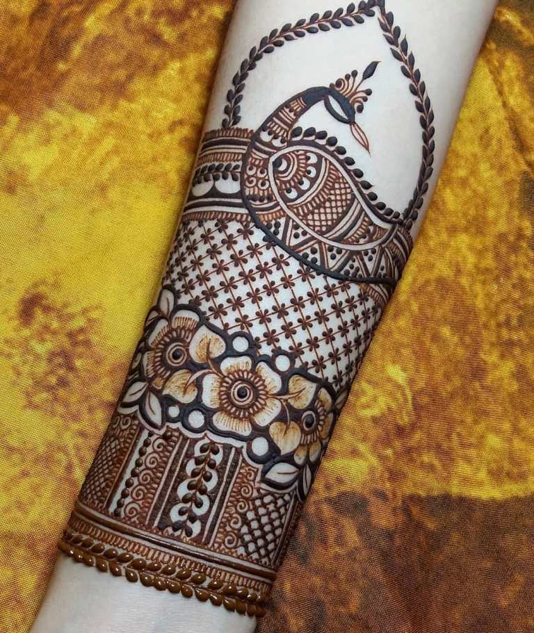 Рисунки птиц. Павлины символизируют красоту, поэтому большинство свадебных дизайнов мехенди изображают больших павлинов с перьями, покрывающих всю руку. Лебеди символизируют успех, попугаи – любовь: обе эти птицы отлично смотрятся в качестве мотива мехенди.