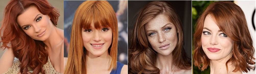 Притягателен рыжий оттенок у женщин с зеленым оттенком глаз и матовой бледностью кожи. Бронзовый загар в сочетании с голубизной глаз делает обладательницу рыже-коричневых прядей особенно красивой. Яркие оттенки не стоит выбирать девушкам с веснушками и с молочной белизной лица – этот оттенок только усилит контраст, что негативно скажется на внешнем виде. Цвет подойдет для чуть смуглых женщин.