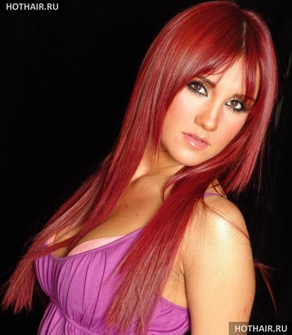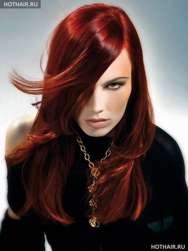 огненно-красный цвет подчеркивает блеск и гладкость прямых длинных волос