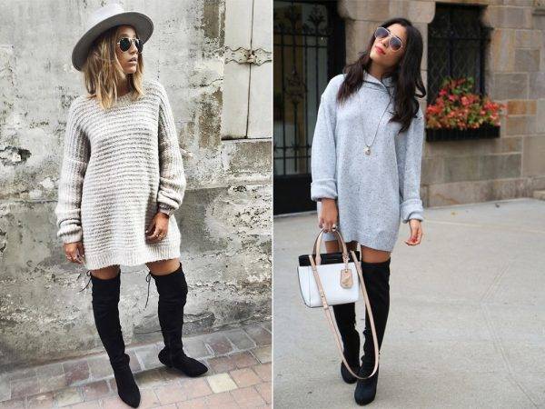 Но в такой комплект даже зимой можно смело ввести летнее платье, по канонам сегодняшних трендов в таких комплектах сочетают легкомысленные наряды в паре с теплыми кардиганами или свитерами.