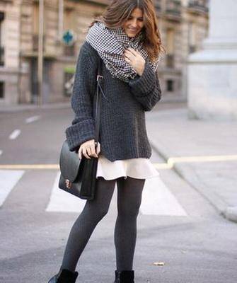 Посмотрите, как красиво смотрится платье с плотными колготками на этих фото: