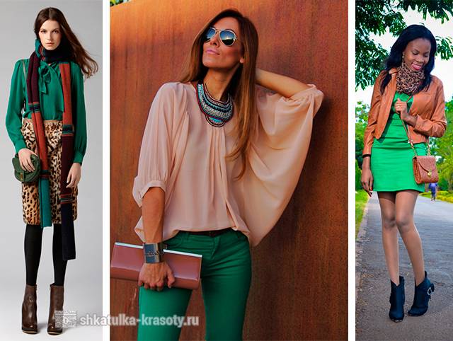 Для того чтобы выглядеть беспроигрышно, нужно знать, с чем сочетается зеленый. Ниже рассмотрены основные сочетания данного цвета в одежде.