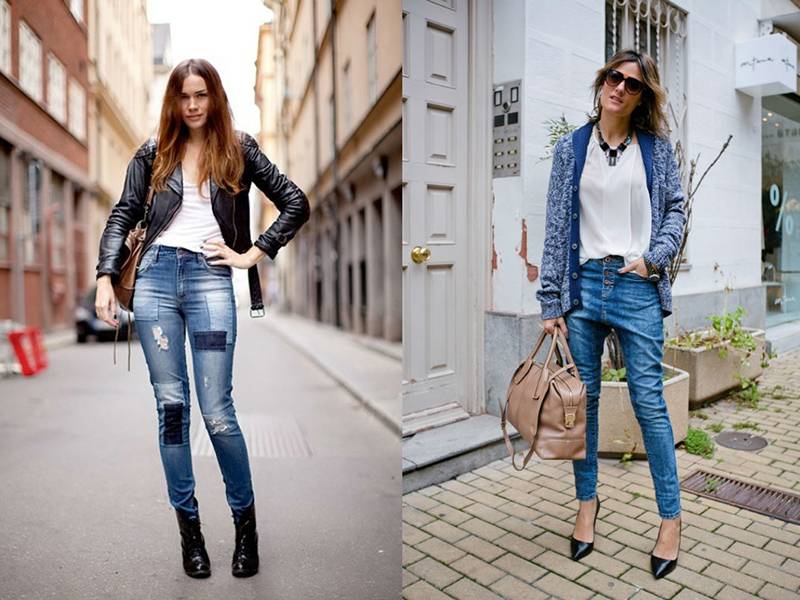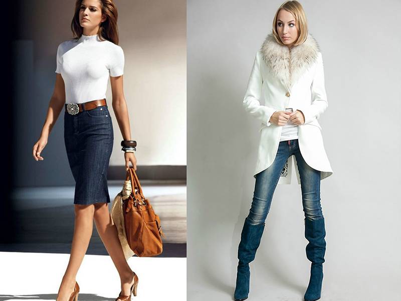 Мало у кого в гардеробе нет такой вещи, как синие джинсы. Это базовый элемент, на основе которого легко создать самые разнообразные луки. Джинсы комбинируем с майками, блузами, свитерами, туниками.