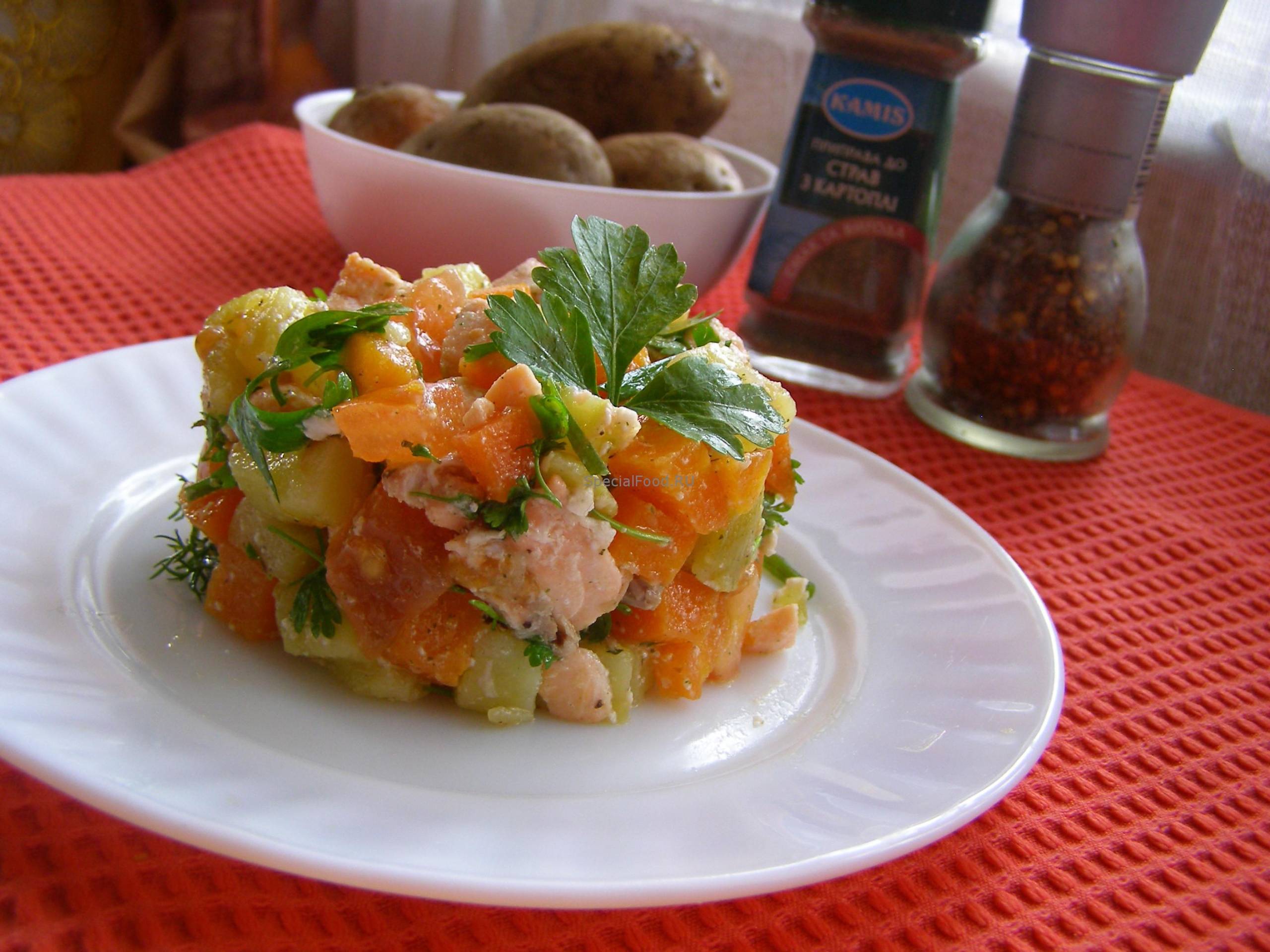 Каждый день, да что там, — каждый прием пищи должен включать в себя салатики. Чтобы они были разнообразными, что полезно всем, особенно малюточке, нужно просто расписать на все дни определенные рецепты. Думается, что этот салат с семгой и отварными овощами непременно займет почетное место в кулинарном списке ваших предпочтений. Ведь его можно вкушать и в холодном виде, и в подогретом!