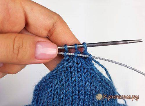 - Так мы делаем до тех пор пока на спицах у вас не останется 4 или 5 петель.