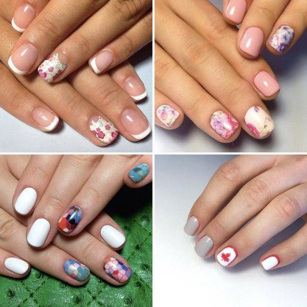Что касается рисунков, то на ногтях можно нарисовать все, что угодно. Это могут быть горошки, цветы, цветочные рисунки. Для тех, кто совсем не уверен в своем умении рисовать, предлагаются специальные наклейки на ногти, которые позволяют просто и быстро получить на ногтях красивейший рисунок.