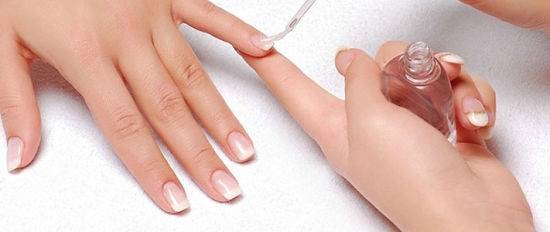 Самое первое правило, которое нужно выполнять перед каждым маникюром, это стирать старый лак с помощью жидкости и промывать ногти мылом с помощью губки для ногтей, вытерев их до сухости. После этого обязательно наносится основа под маникюр (бесцветный закрепитель), с помощью него поверхность ногтевой пластины выровняется и облегчит нанесение основного лака. Для коротких ногтей лучше не покупать лак на водной основе, так как он жидкий и будет выходить за границы ногтя, попадая на кожу.