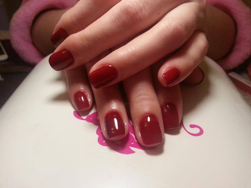 - Гель-лак смотрится на ногтях насыщенным, ровным и глянцевым покрытием, он обладает прочностью и стойкостью.