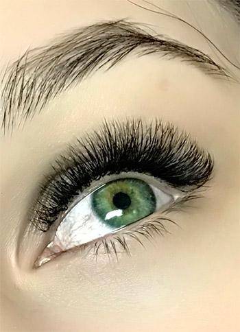 - Комбинированием коротких и длинных ресниц можно скорректировать круглую и выпуклую форму глаз.