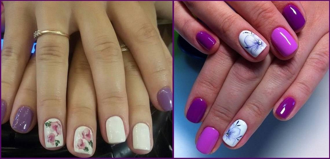 Фиолетовый маникюр с цветами 2016 идеи новинки фото