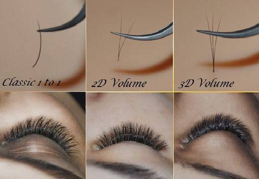 Важно! Эффекты 2D и 3D отличаются по количеству прикрепляемых волосков к одному натуральному – 2 или 3, соответственно