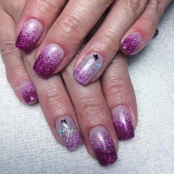 Важно! Мерцающее омбре — это не самый подходящий вариант для женщин, которым уже далеко за 40. Им лучше ограничиться монохромными дизайнами.
