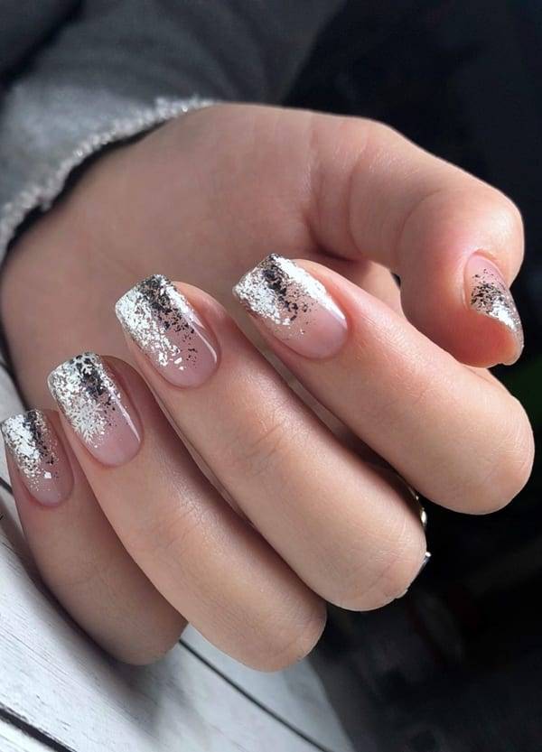 Блестки — это вечный модный атрибут в руках мастера маникюра. Ими можно сделать градиент, покрыть ноготь полностью или же нарисовать лунный маникюр. Это можно сделать при помощи тонкой кисти, кисти для градиента или кисточкой доя гель-лака. Образ с таким декором становится игривым, дорогим и необыкновенным.