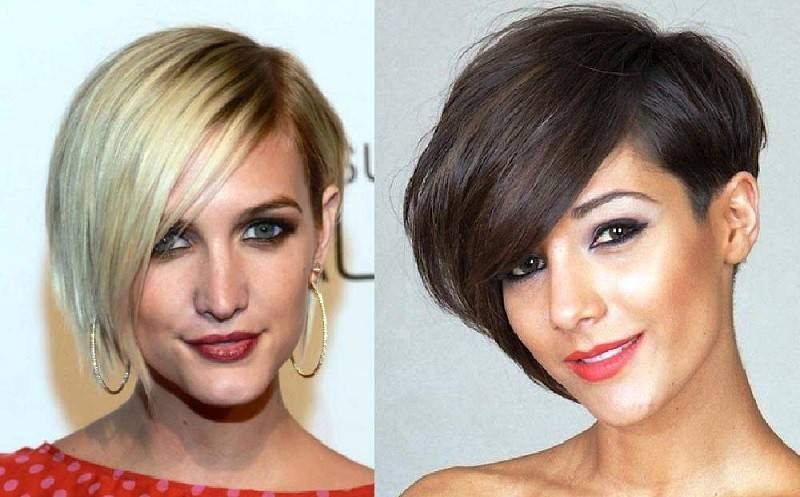 - волосы очень густые. В этом случае даже на девушках обладающих худощавым лицом стрижка будет смотреться великолепно. Лучше всего подойдёт асимметричная причёска с такой же чёлкой, косым пробором. Причём окраска локонов не имеет значение;
