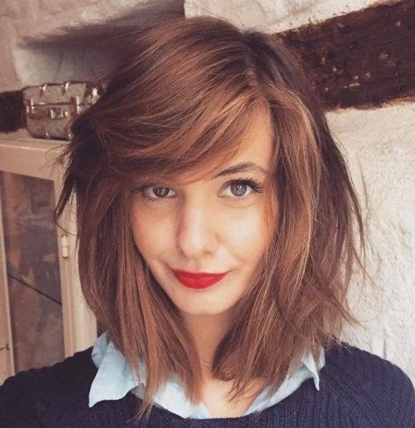 Стрижка боб 2020-2021 с удлиненными прядями спереди может выполняться, как с челкой, так и без нее.