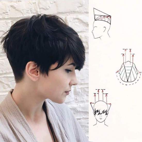 Существует определенная схема стрижки и соответствующая техника выполнения. Основным отличием является небрежность, креативная пикси не должна быть четкой, но при этом присутствуют нотки строгости.